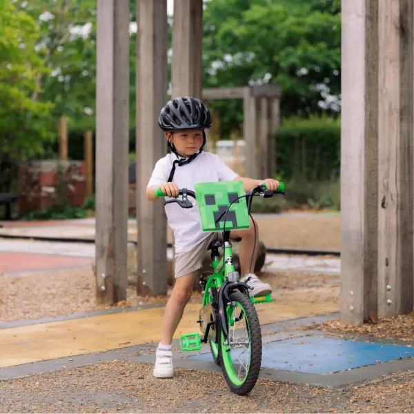 Atklājiet Huffy bērnu velosipēdu, kas ir Minecraft fanu sapnis! Šis zaļais, 16 collu velosipēds ir ideāla izvēle mazajiem piedzīvojumu meklētājiem, kuri vēlas izbaudīt braukšanas prieku. Huffy Minecraft velosipēds ir izturīgs, viegls tērauda rāmis, kas paredzēts ilgstošai lietošanai. 16 collu riteņi nodrošina stabilitāti un komfortu, padarot tos ideāli piemērotus iesācējiem braucējiem. Noņemamie palīgriteņi palīdz līdzsvarot un dod drosmi bērniem pakāpeniski iemācīties braukt. Velosipēds ir košā zaļā krāsā ar Minecraft tematisku dekoru, kas apbur ikvienu mazo fanu. Vienkārši lietojamās bremzes garantē drošu apstāšanos, savukārt dubļu sargi piedāvā aizsardzību pret dubļiem un netīrumiem.