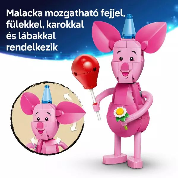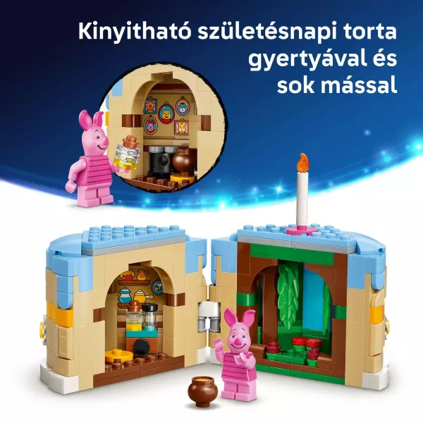 Pievienojies Rukšķiņa saulainajai dzimšanas dienai (43305) un nosvini Simtlatšteņa 100. dzimšanas dienu ar šo uzcelāmo un izstādei piemērotu LEGO® ǀ Disney konstruktoru! Šis detalizētais montāžas modelis ir piemērots bērniem no 9 gadu vecuma un filmu faniem, iedvesmo uz kreatīvi pielāgojamu stāstu veidošanu un kalpo kā lielisks mājas dekors. Komplektā ietilpst klucīšos izgatavots, regulējams Rukšķiņa figūriņa ar kustīgu galvu, ausīm, rokām un kājām, kā arī klucīšos izgatavots dzimšanas dienas tortes spēļu komplekts. Atverot torti, vienā pusē redzama Simtlatšteņa māja, bet otrajā pusē Simtlatšteņa Pirts lauka un LEGO ǀ Disney Rukšķiņa minifigūriņa.