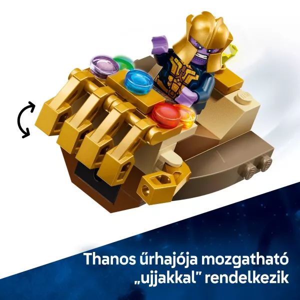 Šajā uzlabojamajā un spēlējamajā rotaļlietā ir 2 minifigūras: Tanosu, kas atrodas kosmosa kuģī ar Bezgalības cimdu, kuram ir kustamas „pirksti” un raķešu šāvēju, un Kapteini Ameriku, kura rīcībā ir stilīgs Kvinjet, kuram ir 2 šāvēji, atvāžama kabīne un glabātuve, kurā var ievietot viņa vairogu. Radošai spēlei iedvesmo kosmiskais akmens, jo Kapteinis Amerika cenšas apturēt Tanoss, kas vēlas iegūt dārgakmeni. Katrai paciņai ir konstrukcijas gabali un liels sākuma bloks, lai ātri saliktu konstrukcijas un tēlus un sāktu spēli uzreiz. Intuitīva instrukcija ir ietverta kā krāsaina bukleta veidā. Komplektā ir 107 komponenti.